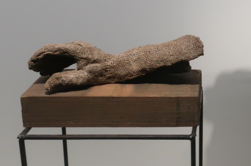 Dans une vitrine proche sont exposées des petites sculptures de membres humains appelés Anatomies (photo 10). Faits de plâtre moulé recouvert de toile de jute figurant l'épiderme, ces démembrements font-ils partie des désastres de la guerre ou sont-ils de simples objet de recherche comme le fit Rodin....