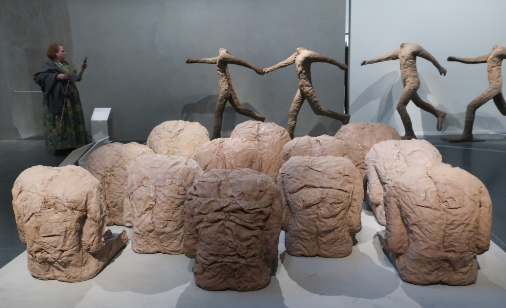 Foule V (photo 5), armée de corps sans visage matérialise la force d'une foule décervelée. Ces ensembles évoquent à la fois la perte d'individualité, la force aveugle et la vulnérabilité de la condition humaine. Elles peuvent aussi être vues comme l'illustration des régimes totalitaires dans lesquels l'artiste a vécu. Le rapprochement avec l'armée de terre cuite de Xi'an en Chine est inévitable.