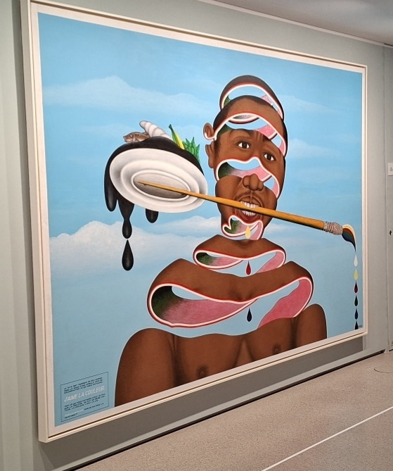 Pour Cheri Samba, du Kinshasa, la couleur est force vitale. Il en use pour traduire en tableaux narratifs les réalités politiqu